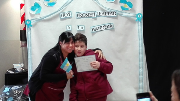 Los alumnos de 2° ciclo A y B realizaron la Jura a la Bandera acompañados por sus docentes y familias, respondiendo a la lectura de la promesa "Si prometo".